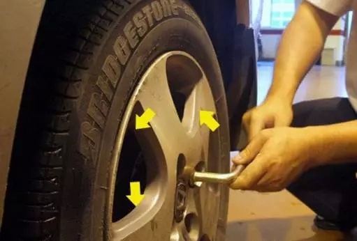 別一上來就把千斤頂先弄上,一定先要用螺絲扳手送送螺絲(是擰松,不是卸下!),注意,在松螺絲的時候,要采取對角線逐個擰松的方法,因為這樣才不會使得螺絲、輪胎、輪轂變型!