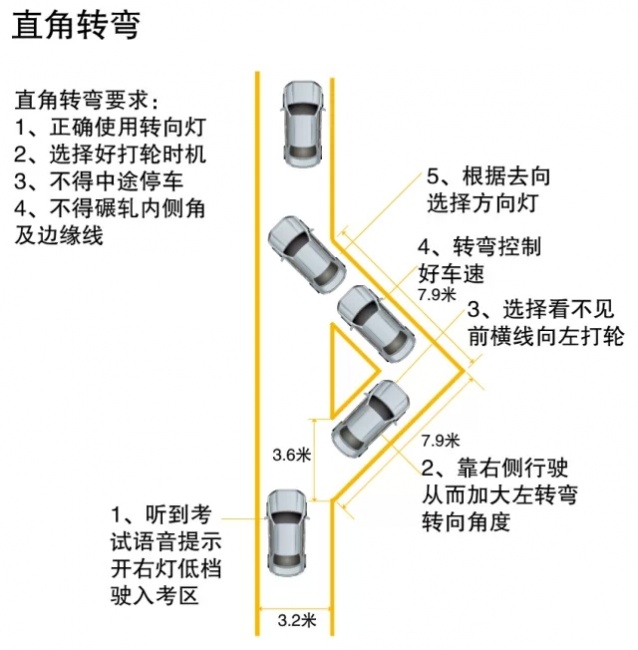 4.直角轉彎過程中,中途不能停車,停車扣100分。