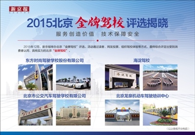 2015年12月,新京報(bào)舉辦北京“金牌駕校”評(píng)選活動(dòng),通過(guò)讀者、網(wǎng)友投票、組織駕校體驗(yàn)等方式,最終綜合評(píng)定出受到消費(fèi)者認(rèn)同、具有實(shí)力的北京“金牌駕校”,排名不分先后公布如下。