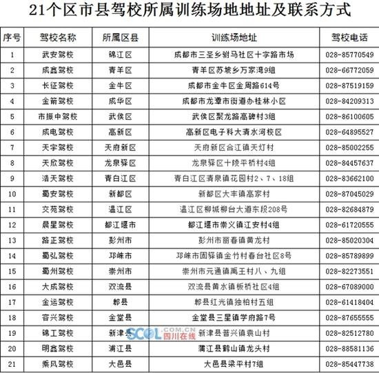 成都21個駕校訓練場向自學直考學員開放(名單)