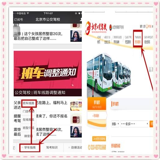 學員可登錄公交駕校官網www.gjjx.com.cn點擊【班車服務】查看,或是通過微信公眾號(bj-gjjx)點擊底端菜單欄【學車指南】選擇【班車線路】查看各條線路的具體信息。