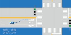 7、如圖所示,A車要在前方掉頭行駛,可以在此處變換車道,進入左側(cè)車道準備掉頭。
