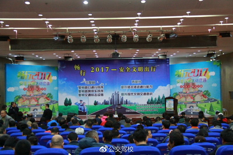 為了增強廣大市民交通安全法制觀念,進一步提升交通參與者現代文明交通意識,全力推進首都交通緩堵工作,3月31日,大興區交通安全委員會辦公室聯合北京公交駕校攜手開展 “暢行2017 ?安全文明出行”百場宣講活動,主要出席的領導分別是:大興區交通安全委員會常務副主任、區公安分局副局長高軍;大興區交通安全委員會副主任、辦公室主任、區公安分局交通支隊王愛民;北京公交駕校副校長周雪緋;大興區交通安全委員會辦公室副主任、區公安分局交通支隊副支隊長潘新國;大興區交通支隊安監科科長宋海松;北京公交駕校招生部主任王廣宇。在啟動儀式上,來自宣講團的民警和公交汽車駕駛學校的講師將文字、圖形、圖像、聲音以及視頻剪輯等多媒體元素濃縮于一體,圖文并茂、聲像交融、有理有據、為大興區300余名駕駛員宣講了一堂一目了然且極富觀感性和說服力的交通安全課。
